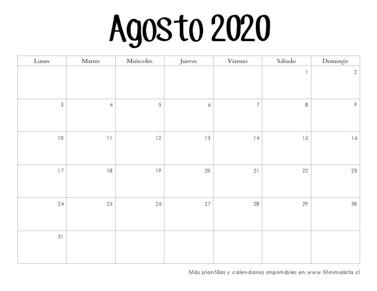 Plantilla Calendario Agosto 2020 Para Imprimir Pdf from www.calendario-ok.com Maybe you would like to learn more about one of these? We did not find results for: Check spelling or type a new query.